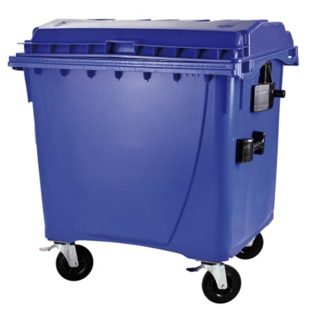 PLASTIC CONTAINER 1100 L WASTE CONTAINER BLUE WITH FLAT LID